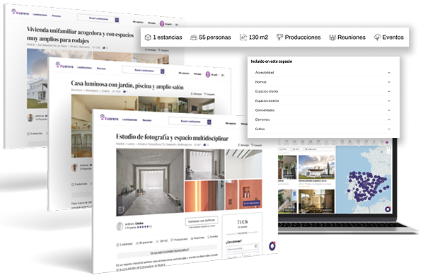 En cada ficha encontrarás información clave: fotos, descripción, vídeo, planos, metros cuadrados, normas del espacio, condiciones del anfitrión, ubicación aproximada...