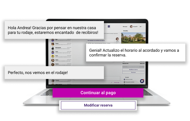 Antes de confirmar la reserva, puedes chatear con el anfitrión para resolver dudas o concretar detalles sobre el uso del espacio. Si es necesario, también puedes modificar la fecha, el horario o ajustar la información antes de realizar el pago.